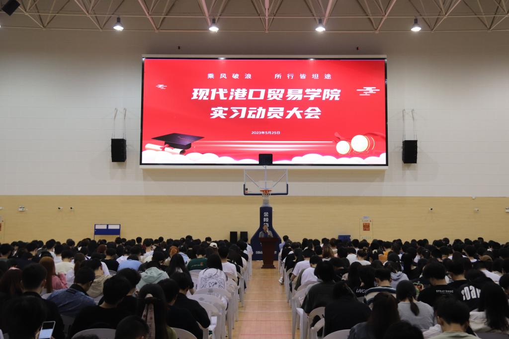 为做好2024届学生实习工作,帮助学生树立正确的实习观念,明确实习任务,5月26日晚,现代港口贸易学院在校体育馆举行实习动员大会。2024届15个班级570余学生、学院行政班子、各教学团队负责人、班主任和相关辅导员参加,大会由学院副院长柏昌顺主持。