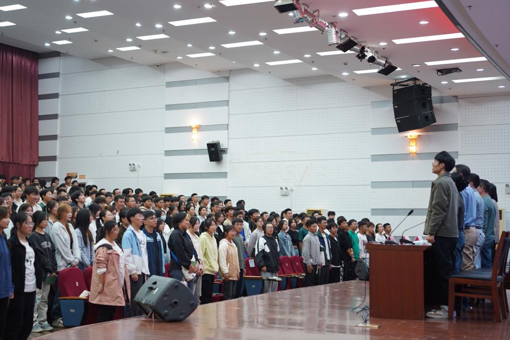 会议在庄严的国歌声中拉开序幕。会上,学院副院长柏昌顺强调了学院教学管理制度,指出大一新生应充分了解专业,培养学习兴趣,合理规划大学生活;熟悉规章制度,严格要求自己;探索学习方法、全面提升自我;希望同学们都能成为德智体美劳全面发展的大学生。