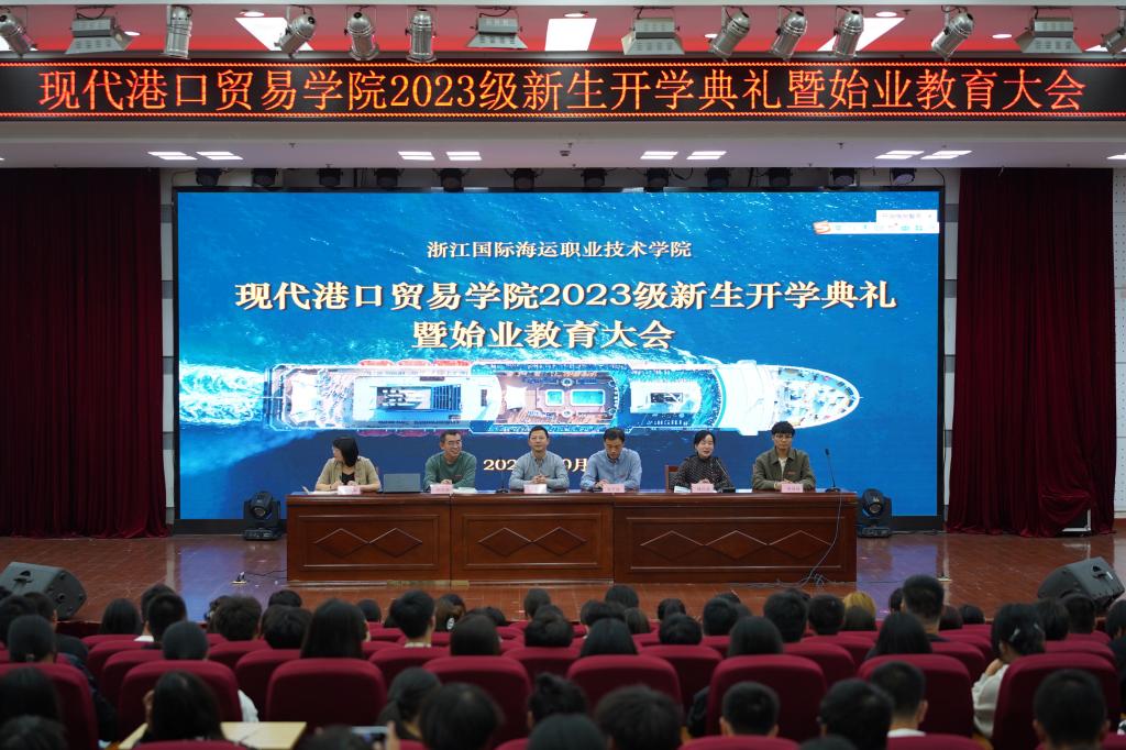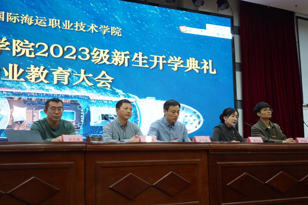 10月8日,现代港口贸易学院2023级新生开学典礼暨新生始业教育大会在图书馆四楼报告厅隆重举行,2023级全体新生和学院行政班子参加大会,学院党总支副书记傅红波主持会议。
