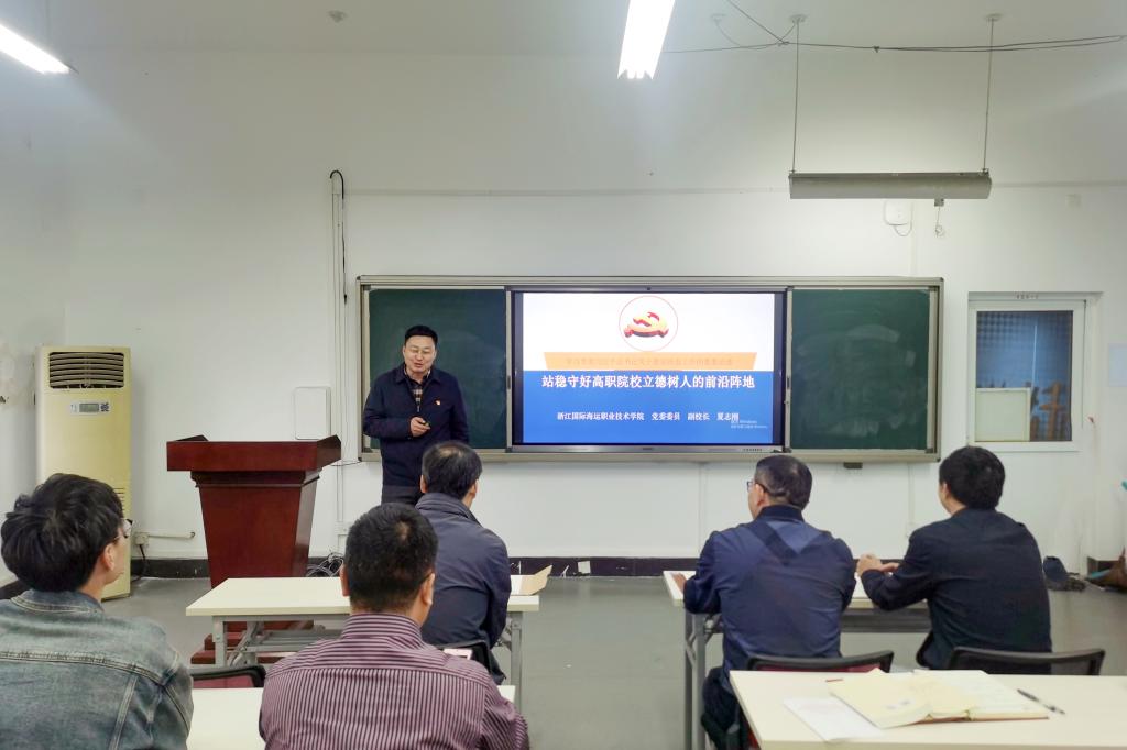 为推进主题教育持续走深走实,11月10日下午,校党委委员、副校长夏志刚以《站稳守好高职院校立德树人的前沿阵地》为题,在海德楼4422教室为现代港口贸易学院党员讲授了一堂关于高校意识形态专题党课。