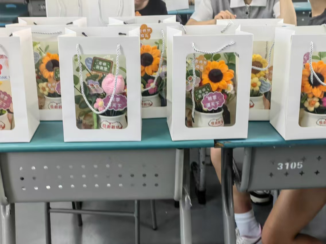 教室里,港贸学生们亲手制作了各种DIY鲜花摆饰以及“桃李满天下,恩情似深海”的贺卡,送到每位老师手中,让老师们倍感温暖。